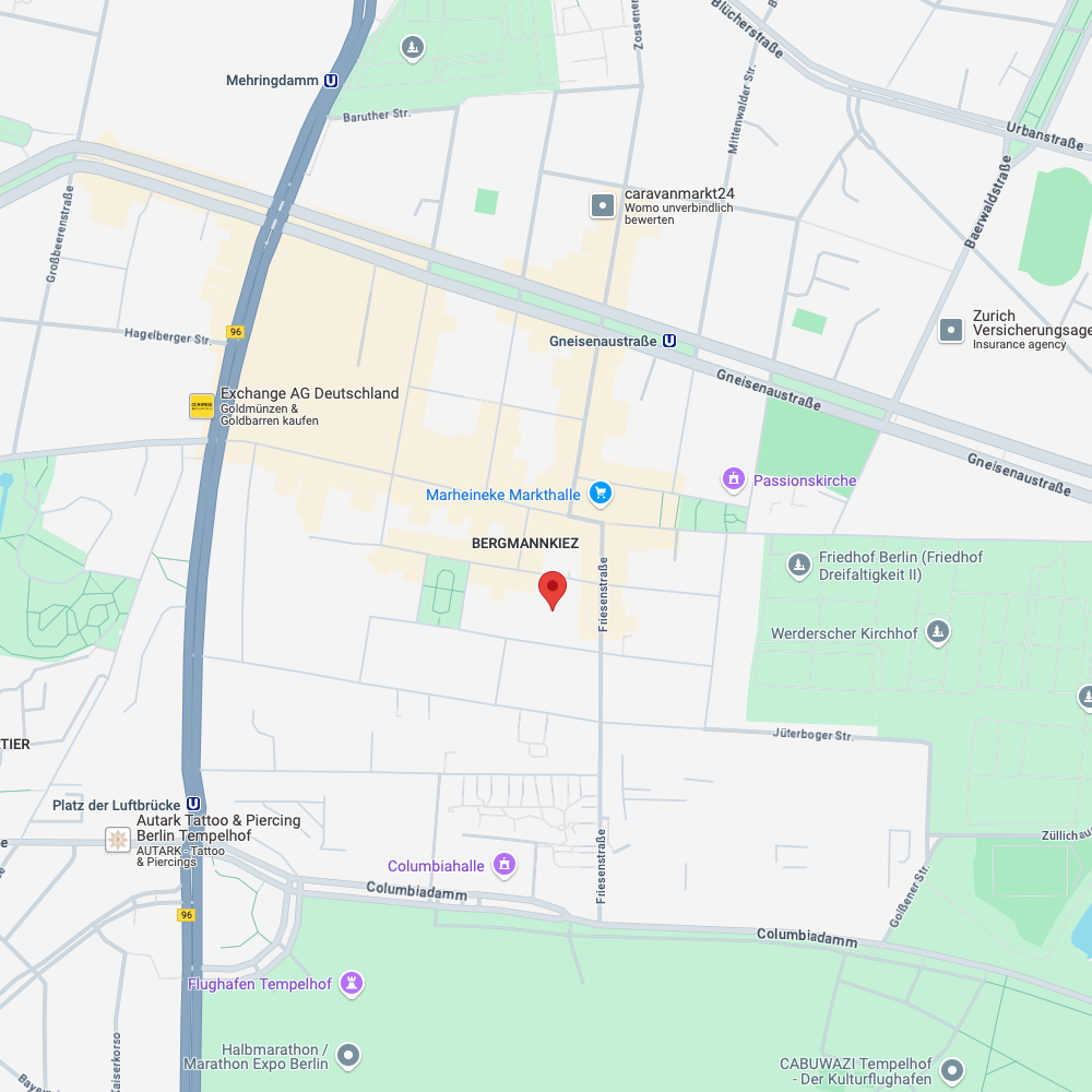 It is easily accessible on foot from the following subway stations:: Gneisenaustraße (U7), Platz der Luftbrücke (U6) and Mehringdamm (U6/U7).